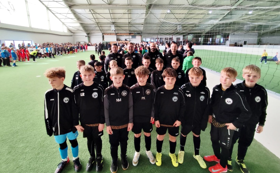 Dieses Jahr wollten wir allen Kindern so viel Spielzeit wie möglich bieten und wir durften das erste Mal mit 2 Teams des SCM antreten. Um so erstaunlicher war es, dass wir tatsächlich mit beiden Teams die Zwischenrunde erreichten. In den Vorrundenspielen gab es nur spannende Matches, u.a. angeheizt vom Stadionsprecher mit seiner markanten Stimme. Die letzte Minute im Spiel wurde parallel auf allen 4 Plätzen mit lauter Musik angekündigt. Einige Zuschauer und Trainer suchen heute noch Ihre Ohrstöpsel…