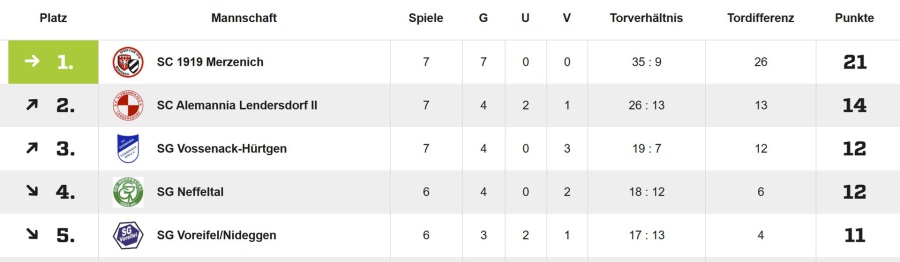 Weiter ohne Punktverlust steht unsere erste Seniorenmannschaft an der Tabellenspitze. Mit einem weiteren Erfolg am Wochenende konnte man nun den siebten Sieg im siebten Spiel einfahren. Der Gast von Columbia Drove unterlag deutlich mit 5:1. Dabei führten die Merzenichr bereits zur Pause mit 4:0 nach Toren von Dominik Kienle, Presley Lubasa, Mate Olah und Oliver Brendt. Das 5:1 erzielte in Hälfte Zwei Angelo Minervino. Für Presley war es bereits Treffer Nummer 16 in der laufenden Saison, womit er unangefochten an der Spitze der Torjäger der Liga steht. Auch in der Fair Play Tabelle steht der SCM an Platz 1. Als nächstes geht es kommenden Sonntag zum TuS Schmidt.